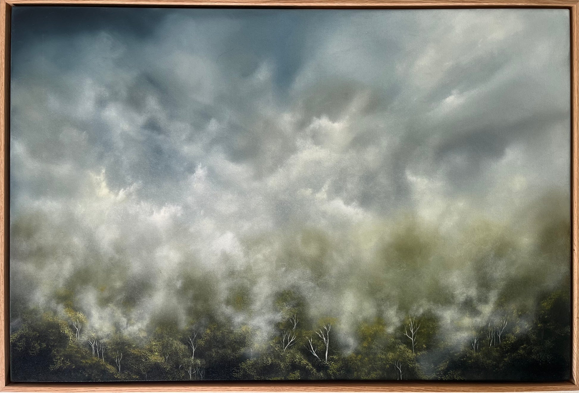 This artwork is currently stretched and ready to hang.